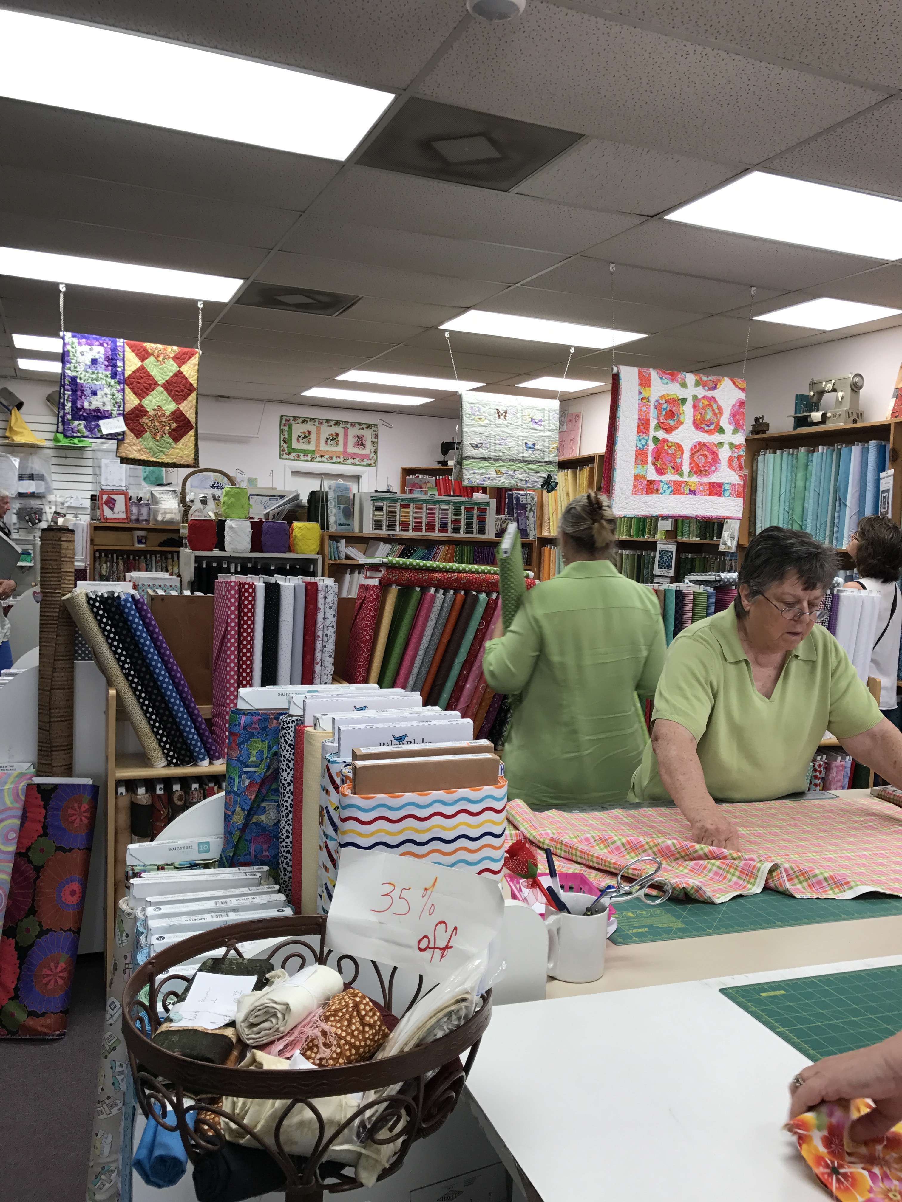 All I managed to buy was two yards of sale fabrics. Those of you who know me, know that is highly unusual. Part of it may be all the QuiltCon shopping. But part of it was that this shop didn’t really have a personality to me. The signs are kind of sloppy, there is stuff everywhere, and it is all a little less organized than the shops that I love. That carries over to the customer service. After my fabric was cut I went to the register and was pretty much ignored. The woman who cut my fabric wasn’t helping another customer, she was chatting with another employee. Weird.