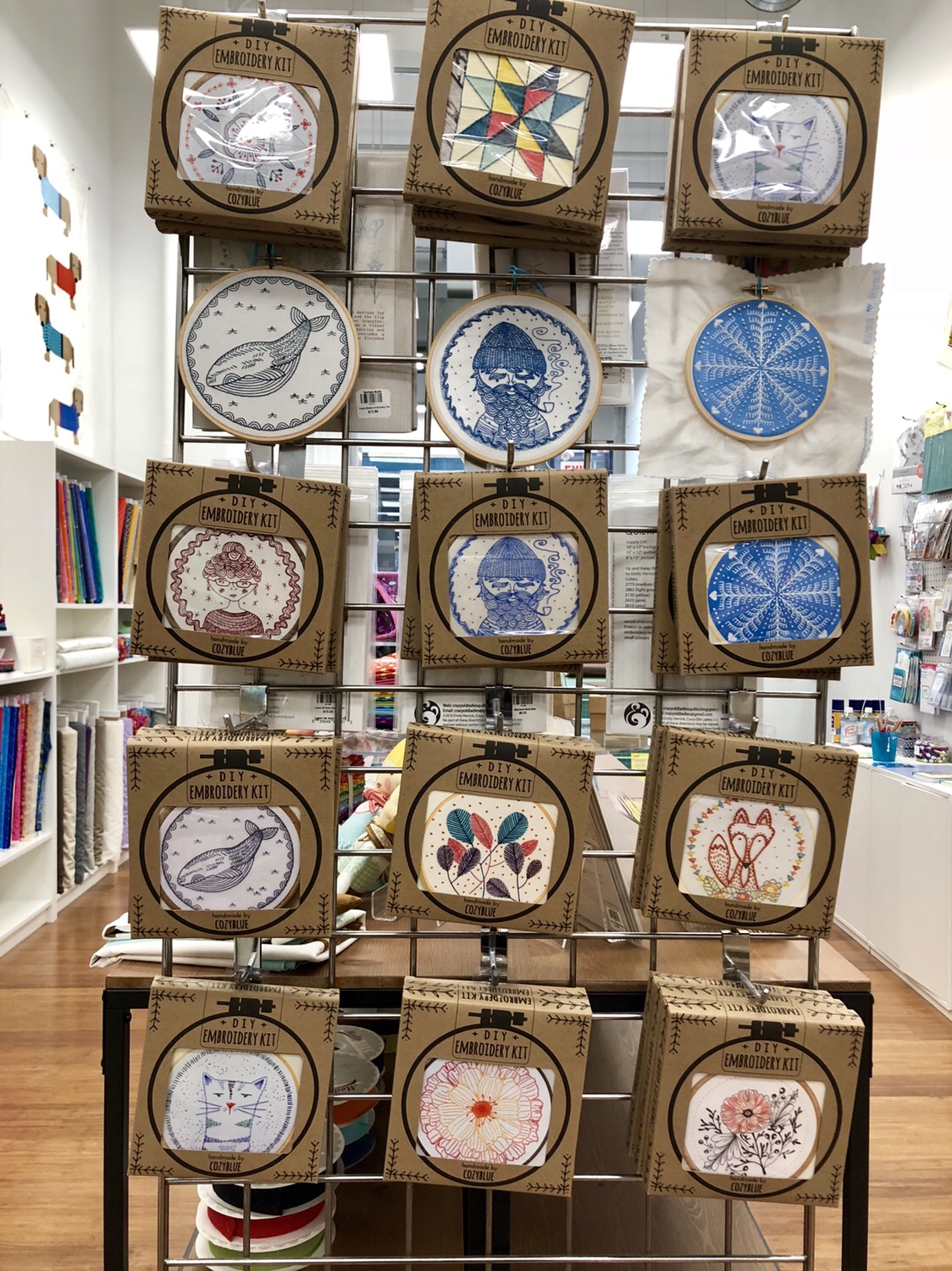 Beyond the great fabric and notions selection, they had lots of other cute projects. These are little hand embroidery kits that include all the supplies, including a little wooden hoop. I grabbed one of these for my mother-on-law for Christmas.