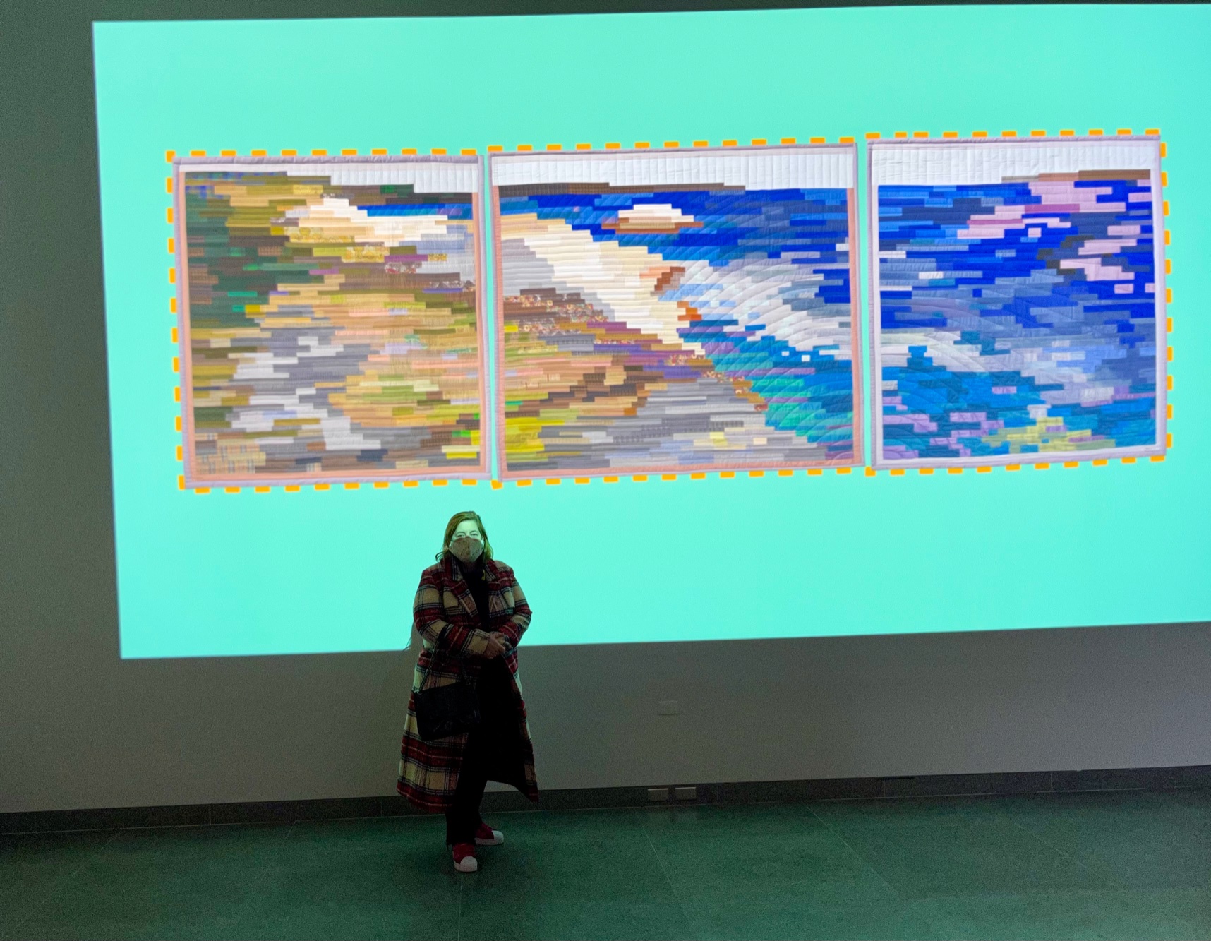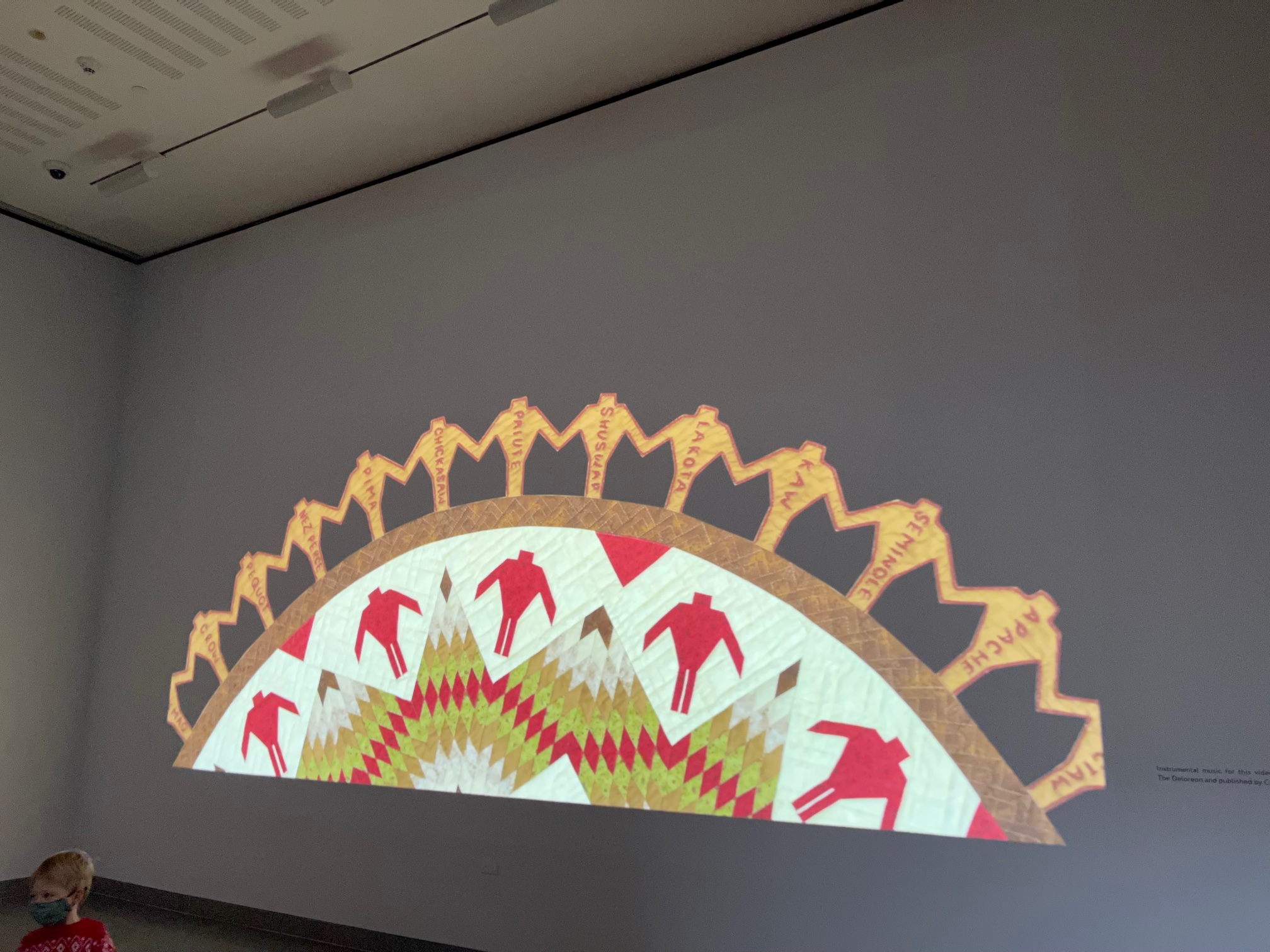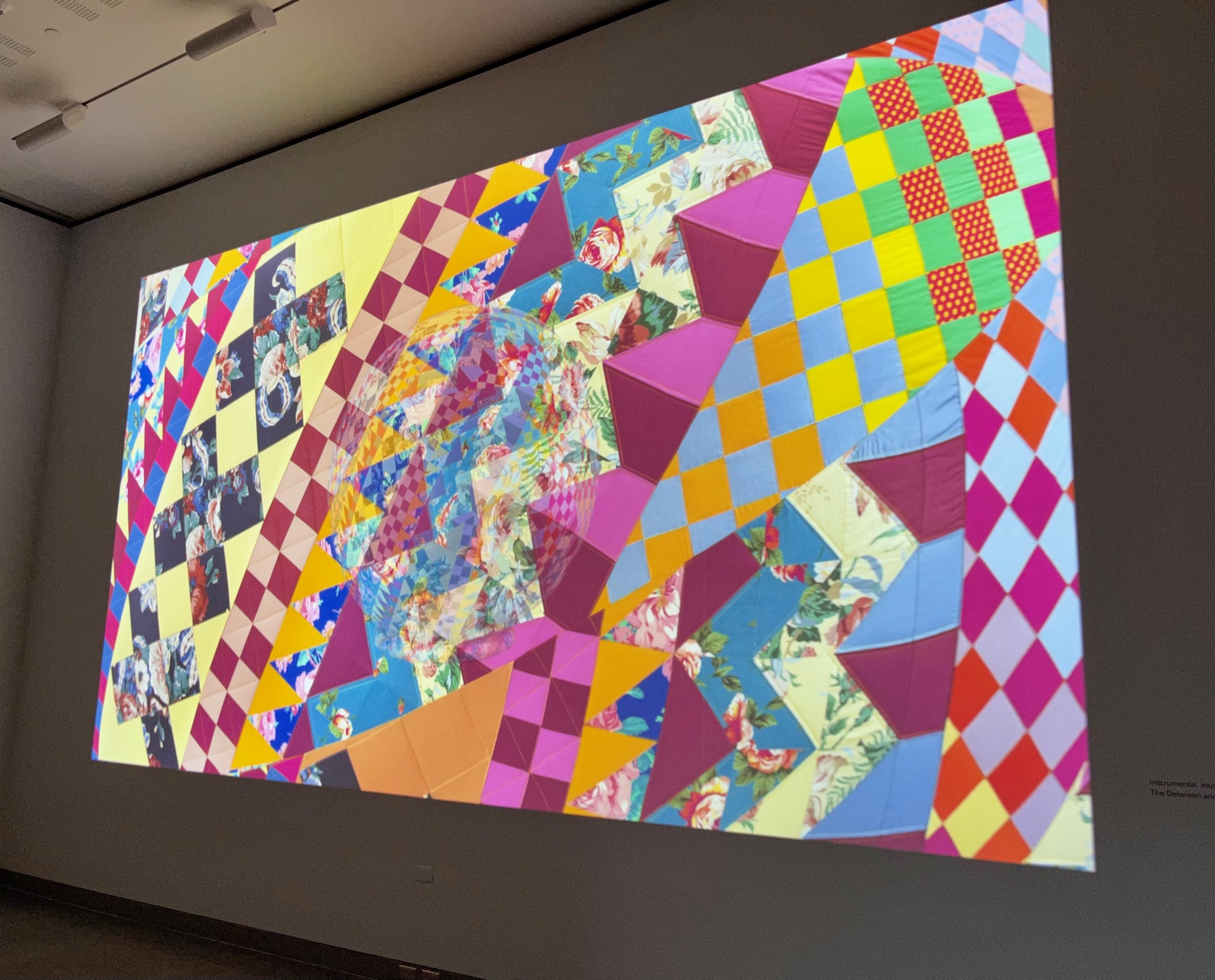 Upon descending the staircase to the exhibit you are greeted with a larger-than-life interactive display highlighting some of the quilts.