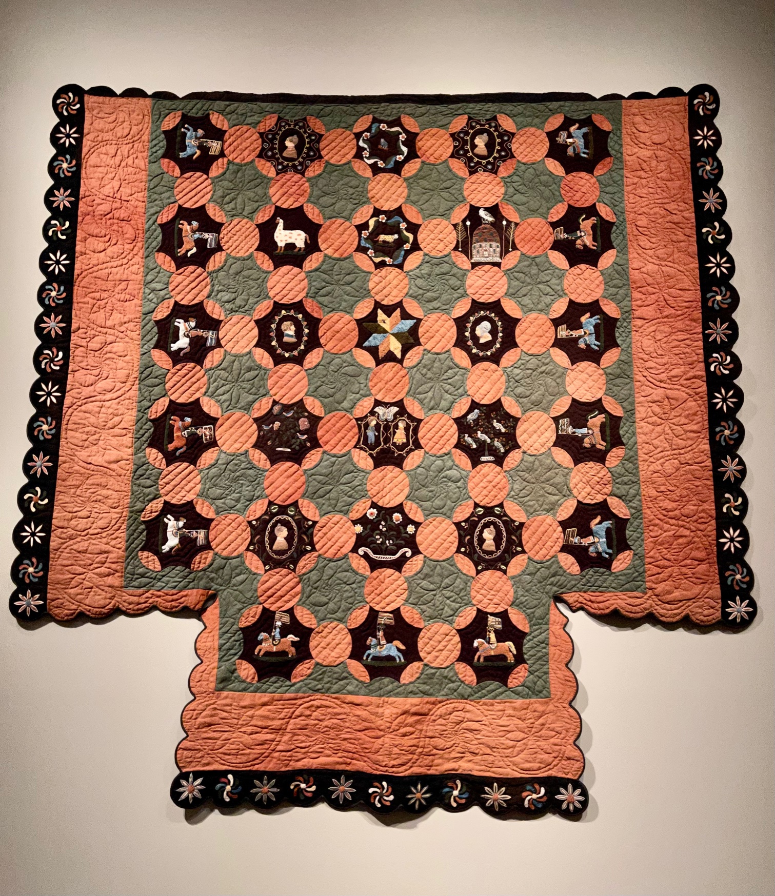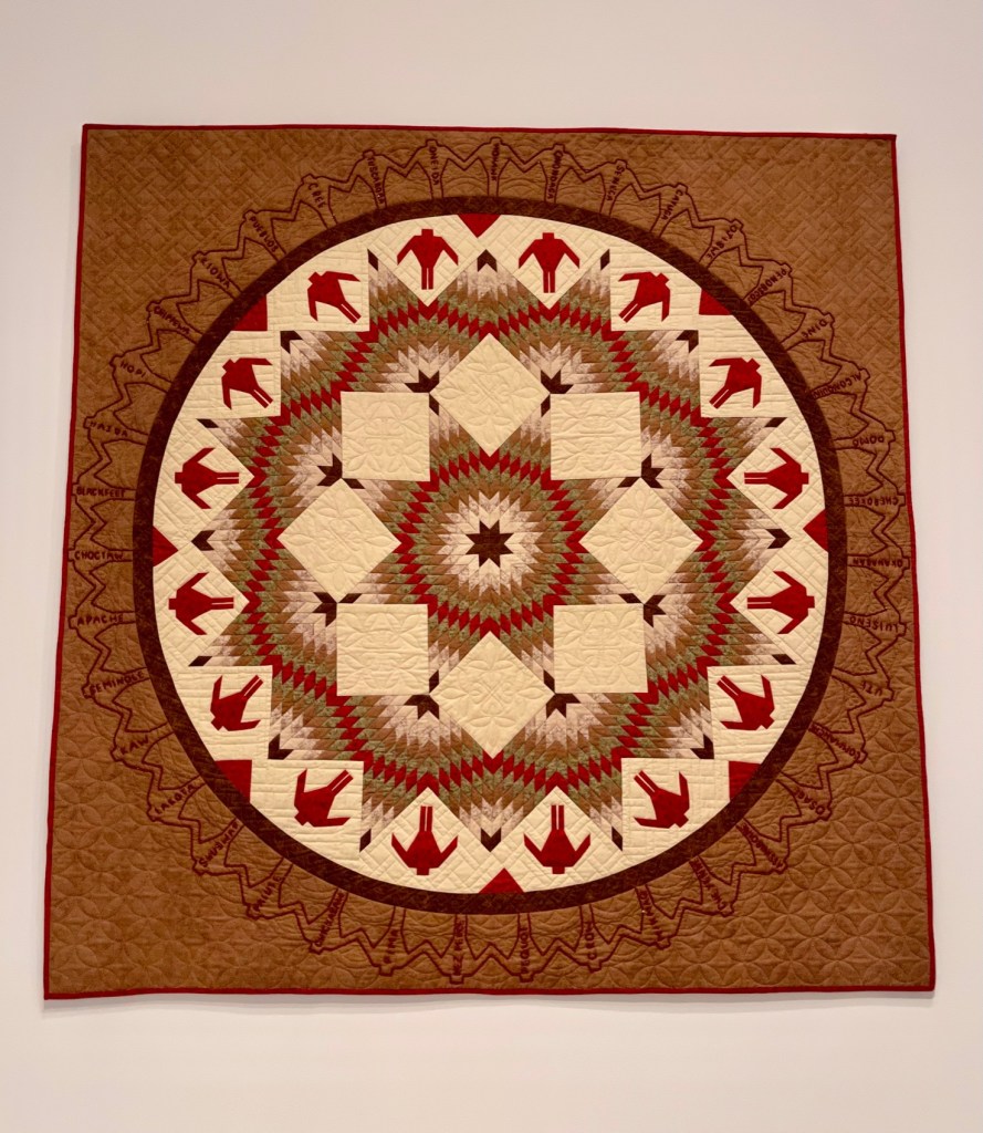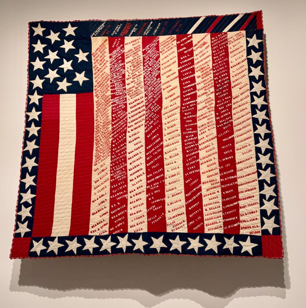 I was so lucky to kick-off 2022 with a visit to the Museum of Fine Arts in Boston to see the Fabric of a Nation – American Quilt Stories exhibit. This exhibit features approximately 100 quilts that span 300 years of American history, including some of the our darkest days and toughest times. Beyond the obvious meaning of the work, you see the spirit of America, amazing craftsmanship, and creativity that continues to inspire. The quilts are unique in sharing the perspective of the maker and a placard in the exhibit talks about how the makers used these quilts to give difficult topics a soft landing, including several pieces believed to have originated in Connecticut. Following are some of the pieces that spoke to me.