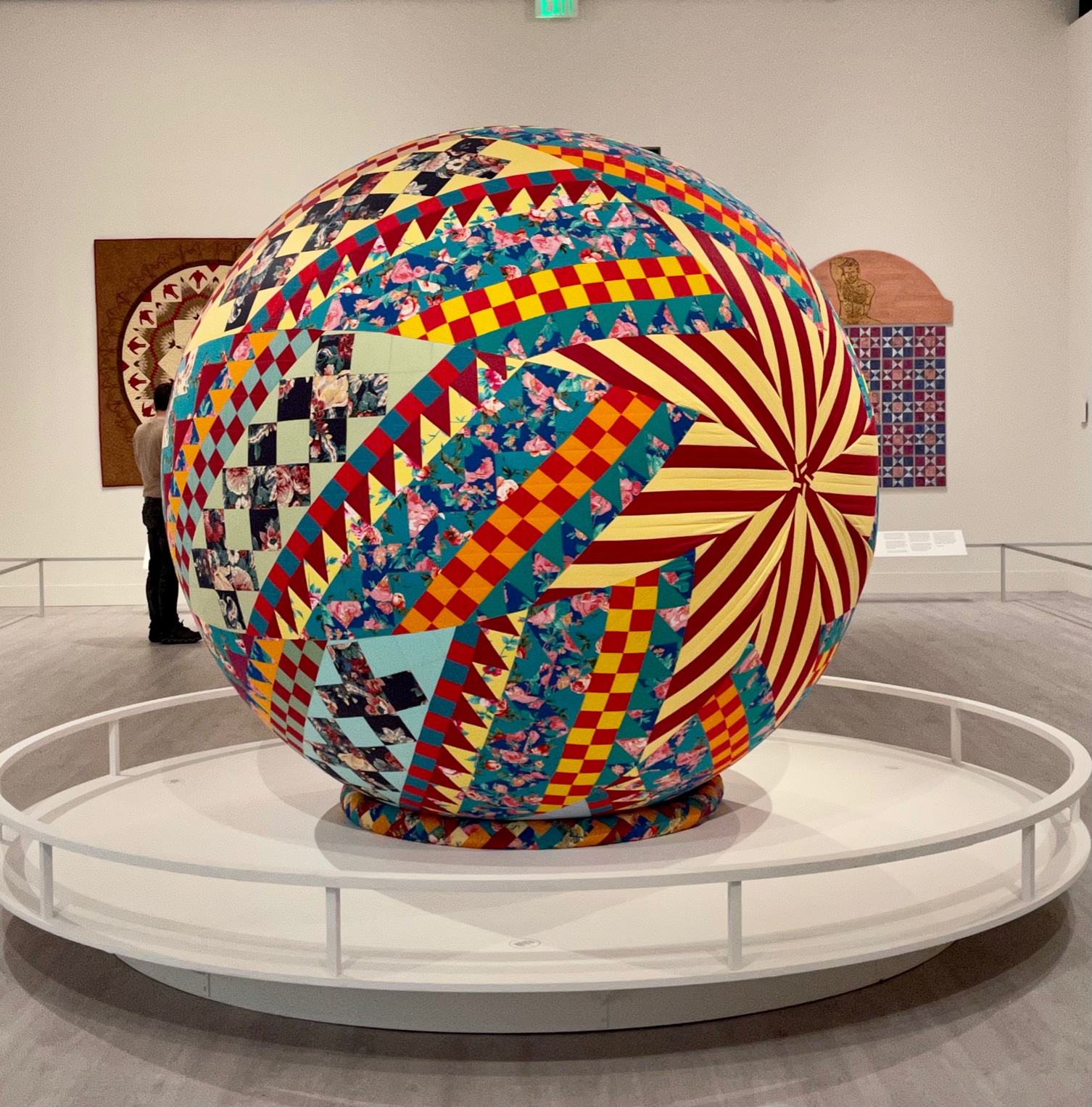 Upon descending the staircase to the exhibit you are greeted with a larger-than-life interactive display highlighting some of the quilts.