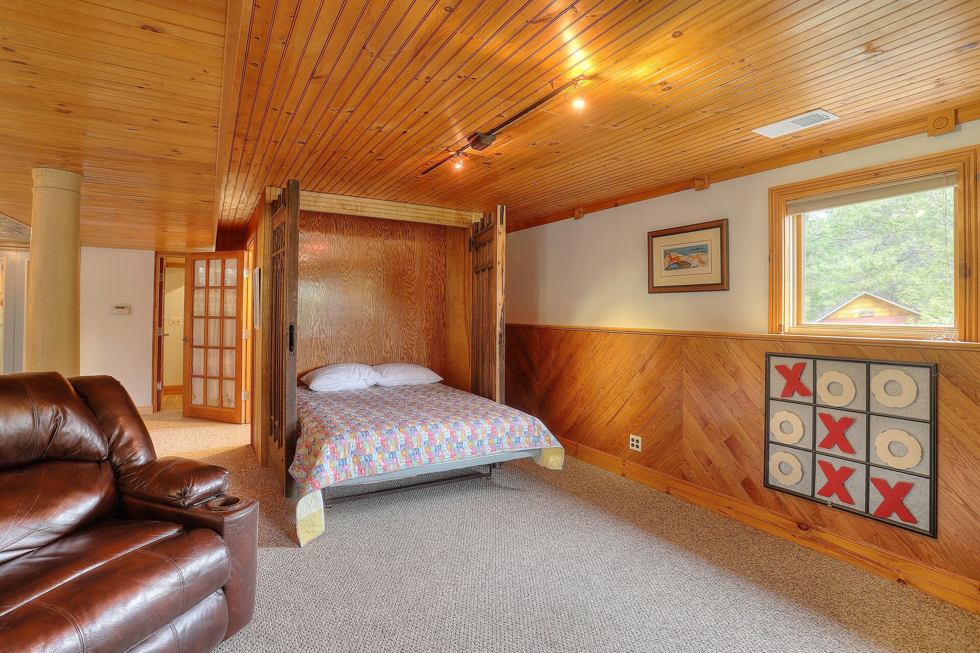 We had about three weeks from the time we came to a deal with the former owners and closing. We planned the bunk room to keep the queen size murphy bed that was there, but added two sets of twin over full bunk beds. Rangeley is a four season community – skiing and snowboarding in the winter; hiking and early fishing in spring; boating, hiking, lake activities all summer long; and hiking and leaf peeping in fall. That gave me the idea to do a buffalo check / plaid quilt for every season, and a fifth that celebrated all four seasons. And given the timeline (two weeks by the time I had a plan) I was so lucky that Peggy jumped in to help.