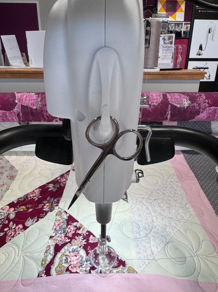 Duh. Perfect for hanging your scissors on the front of you machine. Whatever you do, please, please, please get one of these and put it on your machine if you have a longarm. And don’t ever lay your scissors on your fabric while your machine is moving. (Ask me why!) Thanks Harvey for this tip!
