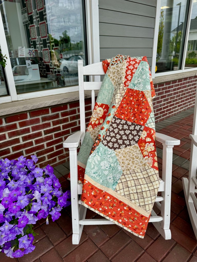Hope you have enjoyed this free pattern that works with any layer cake. If you want to make this one, we have kits available (and they are on sale) to make the quilt as shown! We also have the Shades of Autumn Layer Cakes that you can add your own corner and border fabrics to.
