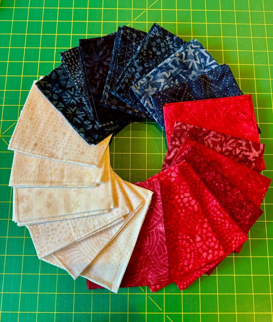 For our heart/flag quilt, we used Liberty batiks by Timeless Treasures.