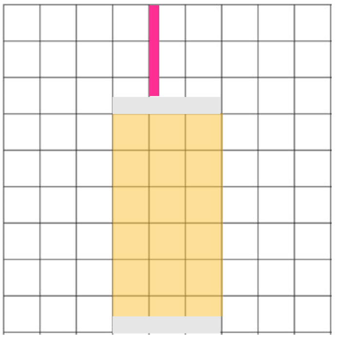 - Sew a gray 3.5” X 1″ N piece to either short side (top and bottom) of the peach 6″ x 3.35″ Y rectangle. This is the drink unit.