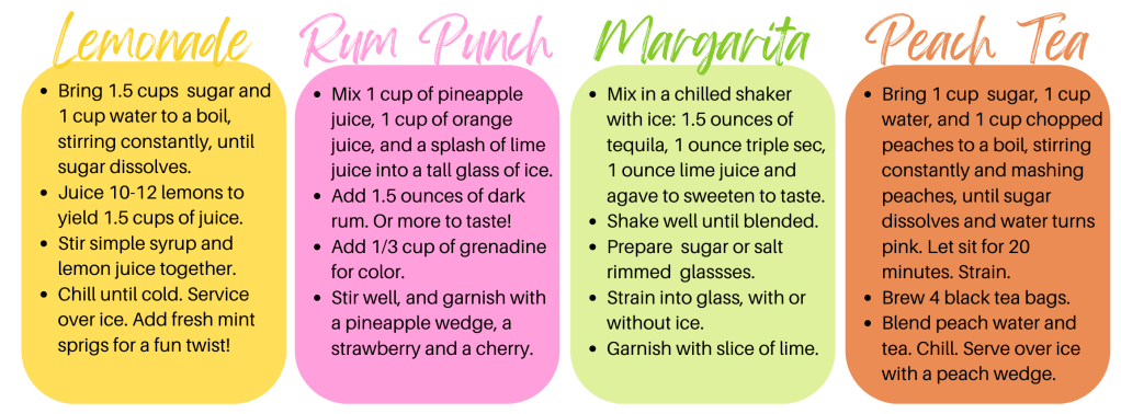 - Light pink, lime green, lemon yellow and peach fabric for the beverages