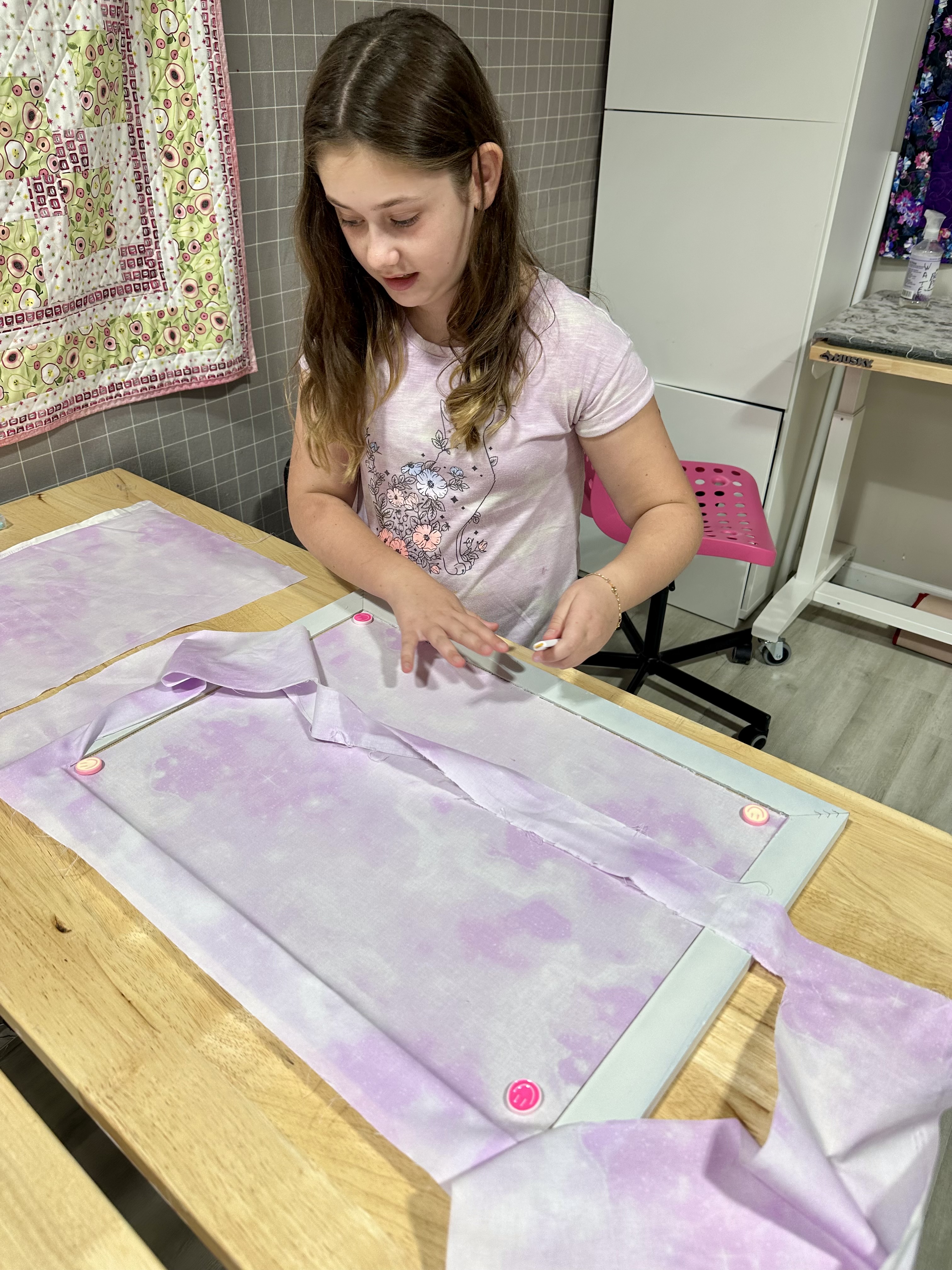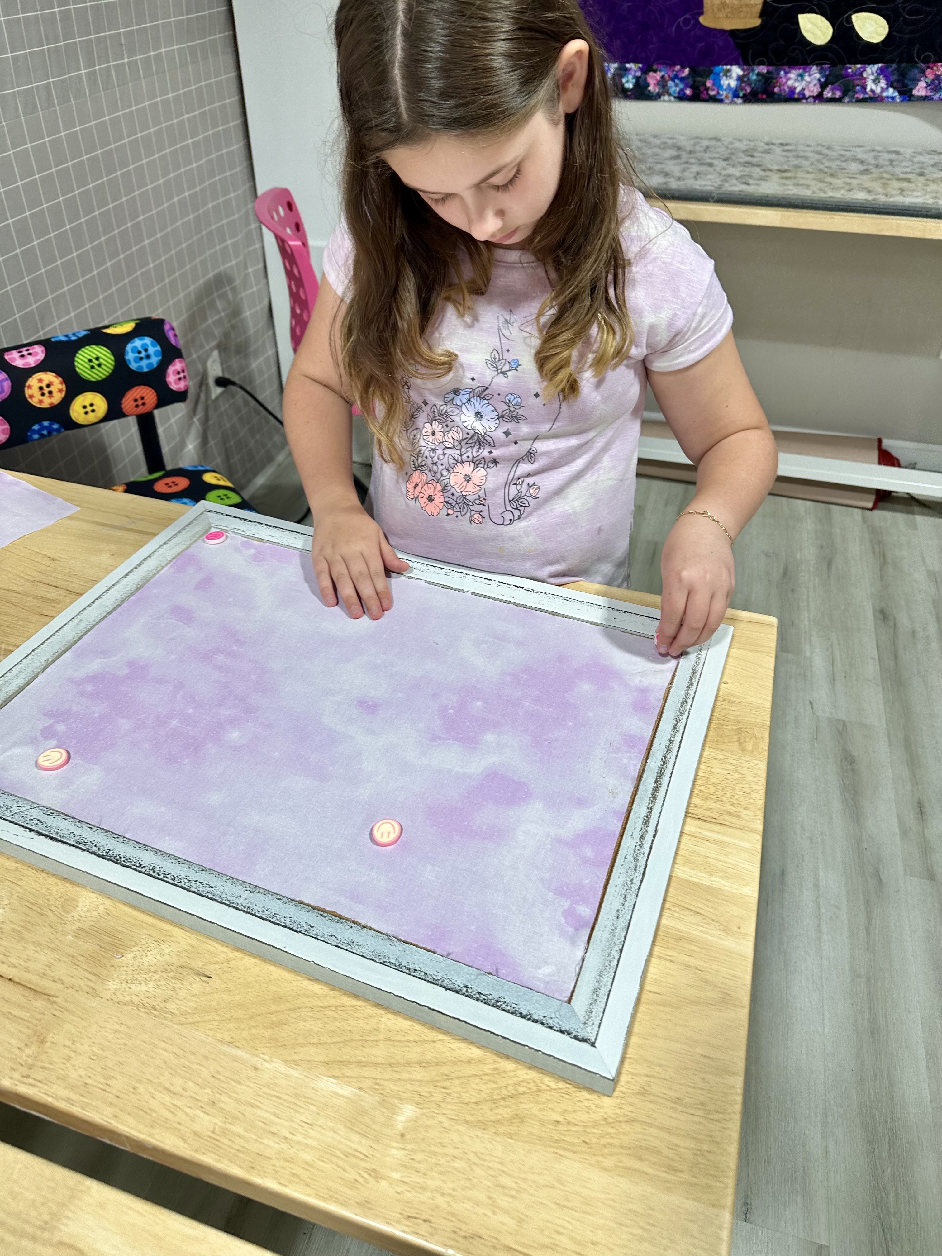 Next, pick fabric! You can go wild with florals, or hobbies, or a sports team. Caitlyn and Jane went a little quieter and picked a favorite color. You can change your board out as the seasons change if you want!