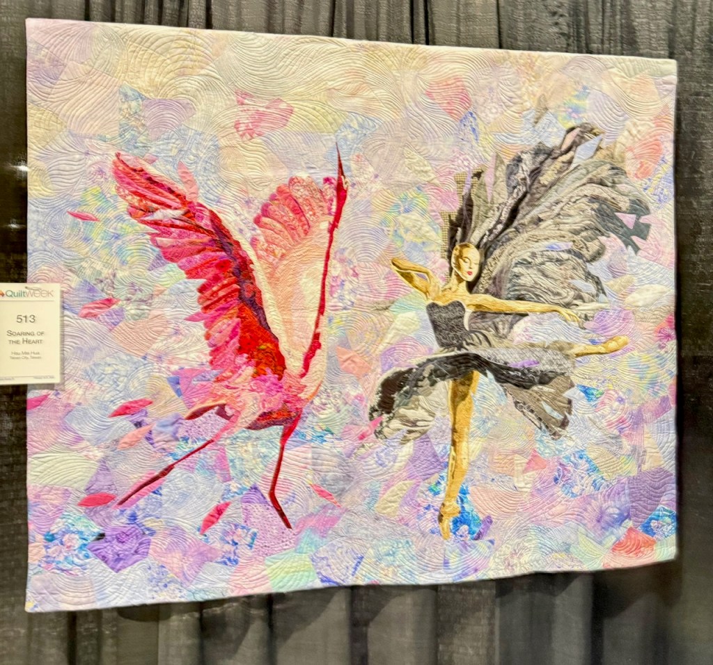 Also in the category of, “what the heck” is Soaring of the Heart by Hsu Mei Hua of Taiwan City, Taiwan. The delicacy of the piece, the movement in both fabric adn quilting, and the expression of the dancer is captivating.