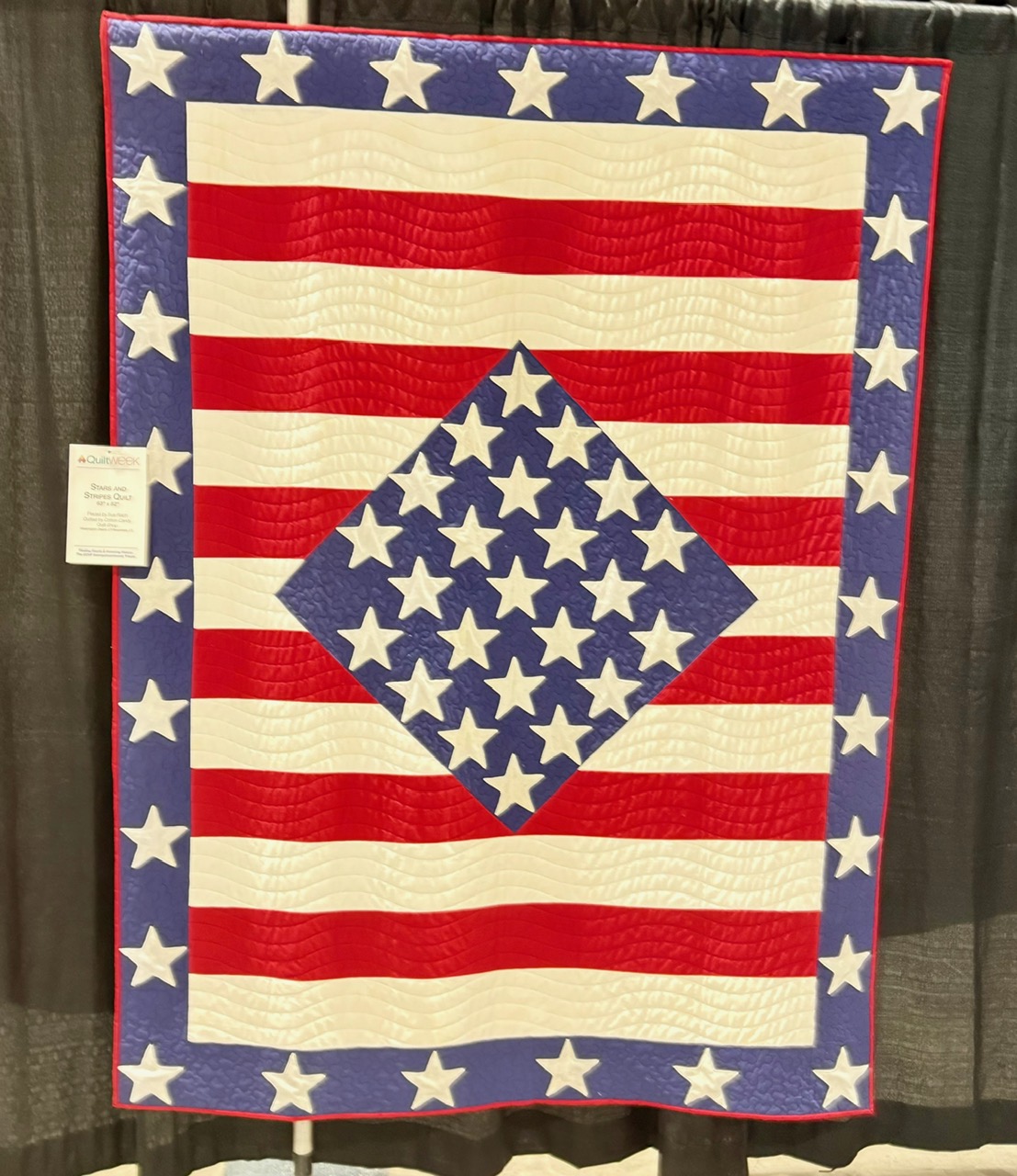 We were excited to see the Quilts of Valor special exhibit that is traveling with AQS all year. While there were so many awesome quilts, it was fun to see two that we quilted for the immensely talented and passionate Sue Riech, Stars and Stripes on the left and Fireworks on the right.