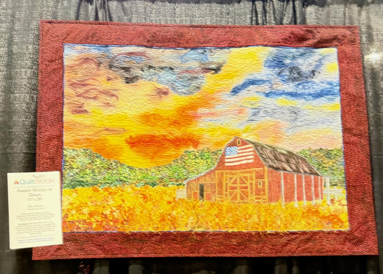 AmberWaves of Grain by Sally Manke of Arcadia, MI. She used many different techniques including fabric painting, inking, free motion quilting and thread sketching. Beautiful!