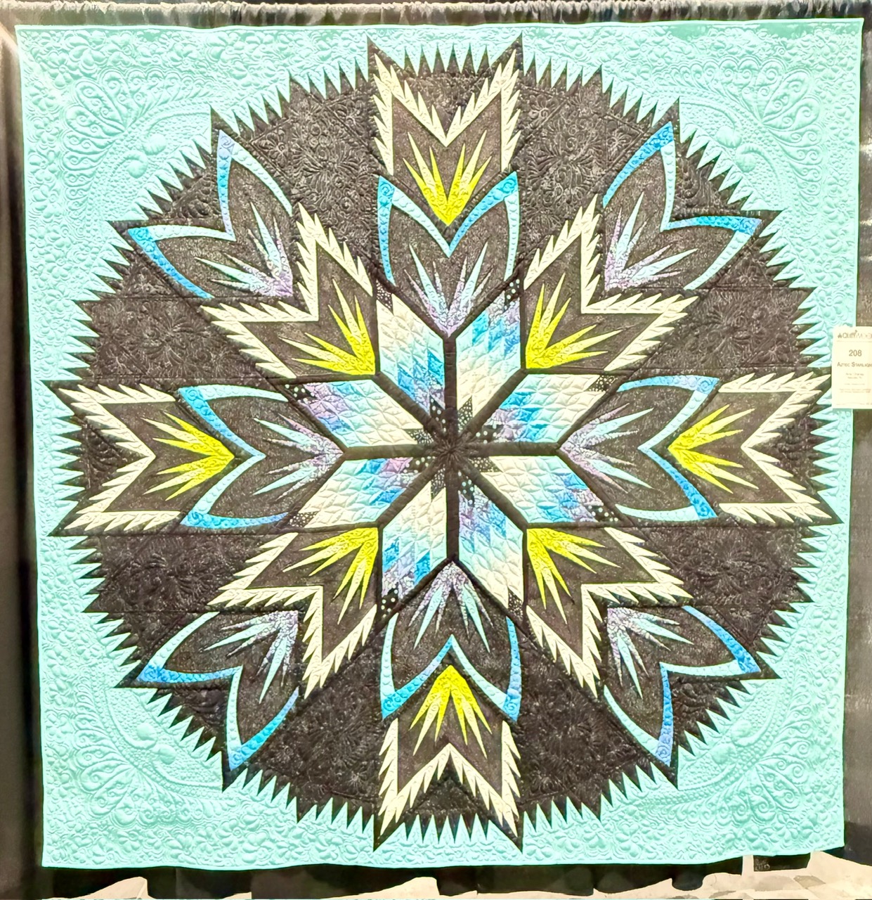 Aztec Starlight by Amy Chaney of Maryville, TN and quilted by Denise Cornette based on Judy Niemeyer’s Blue Lagoon pattern. While I love a rainbow, the colors on this were delightful!